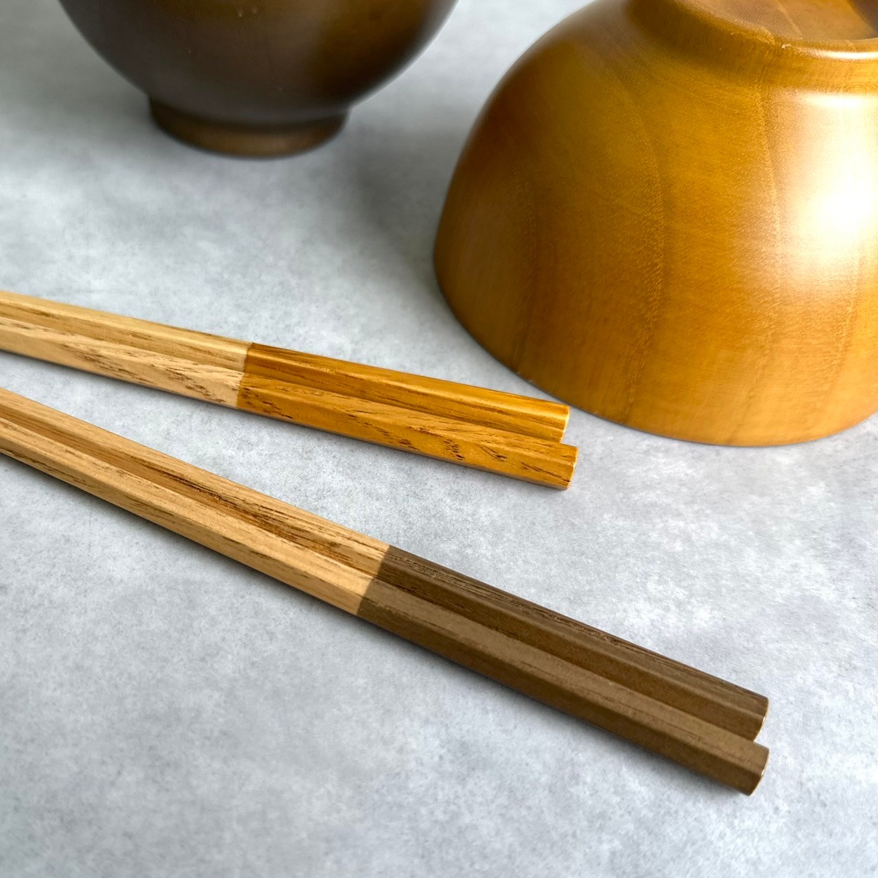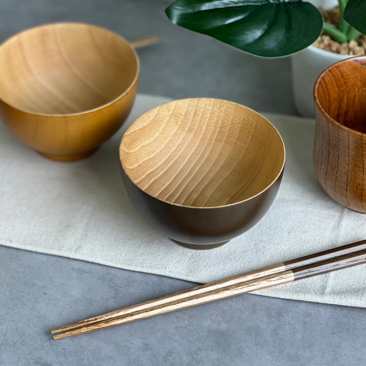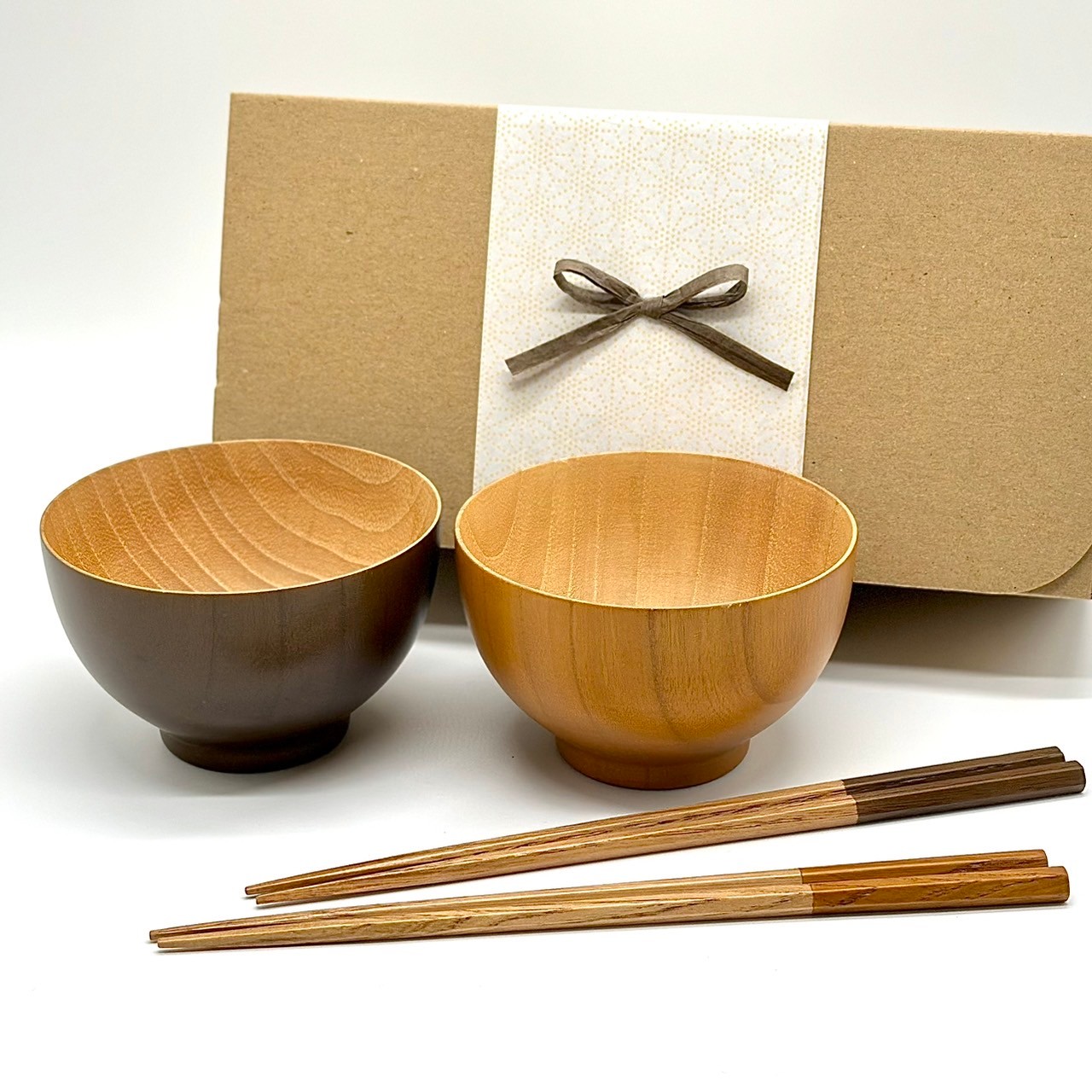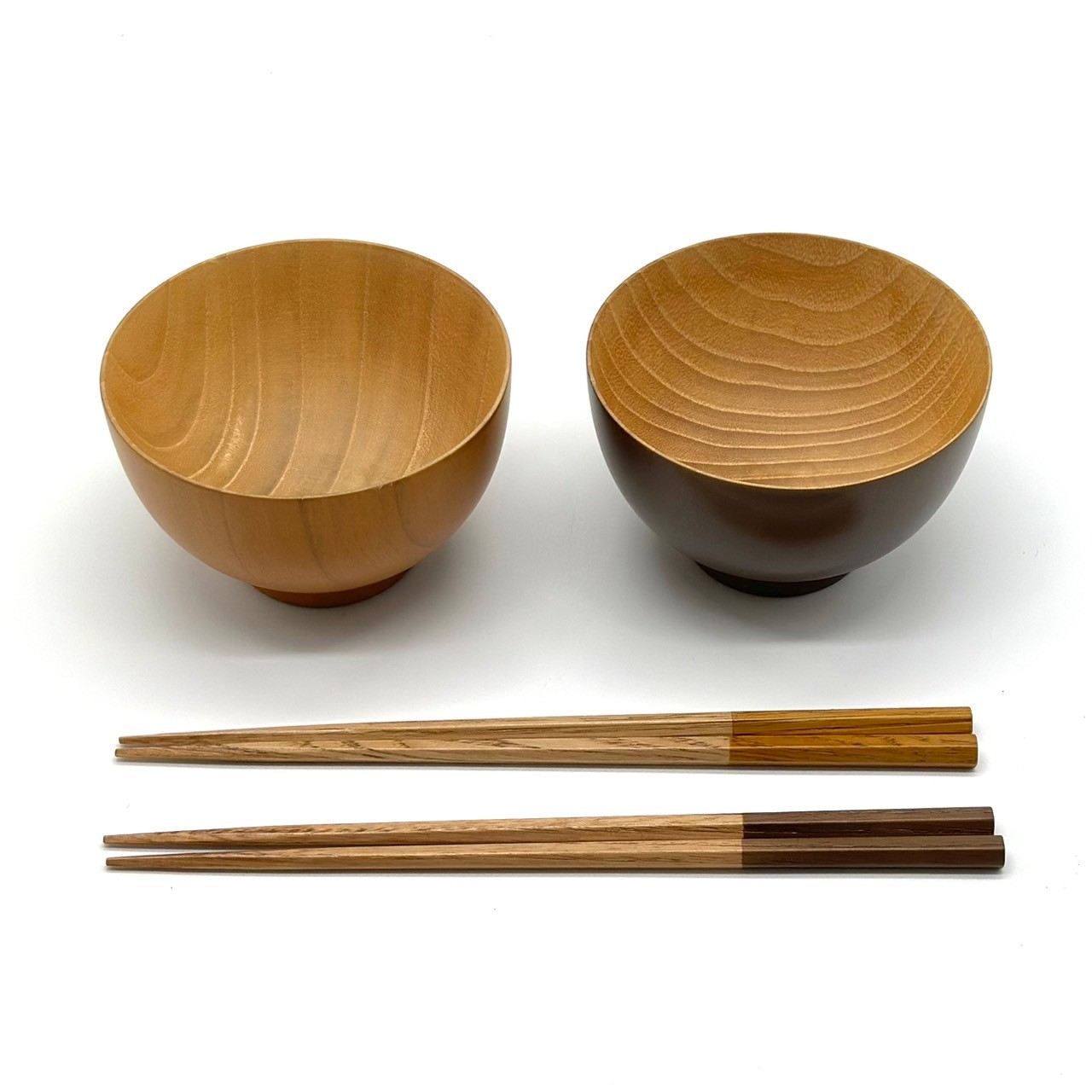 4点セット お椀 汁椀 ペア ナチュラルボウル ブラウン 2個セット 箸付き [001-012-004]