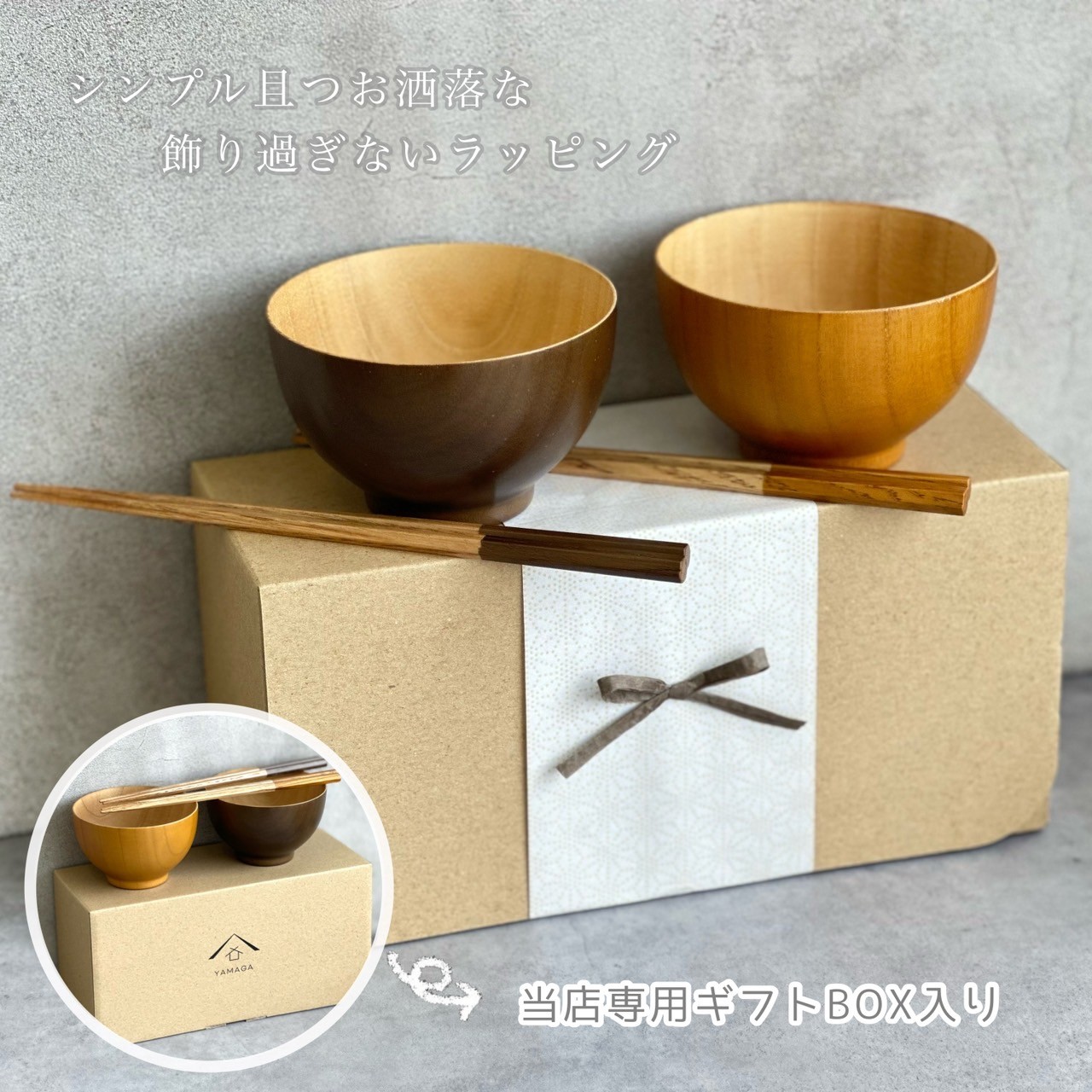 ギフトボックス付き ペア ブラウン アイボリー お椀 2個セット 箸2膳付き 計4点セット |