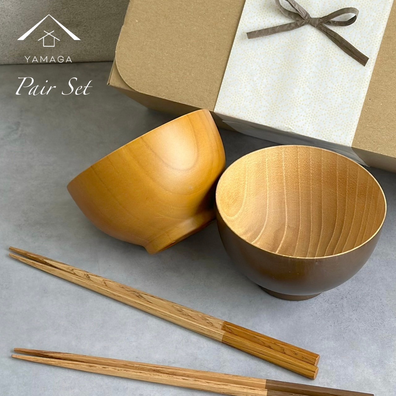 4点セット お椀 汁椀 ペア ナチュラルボウル ブラウン 2個セット 箸付き