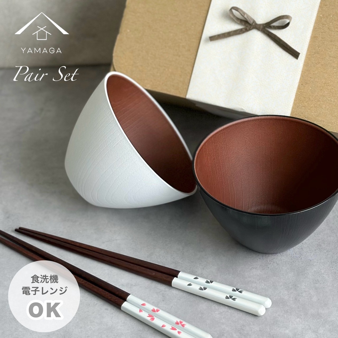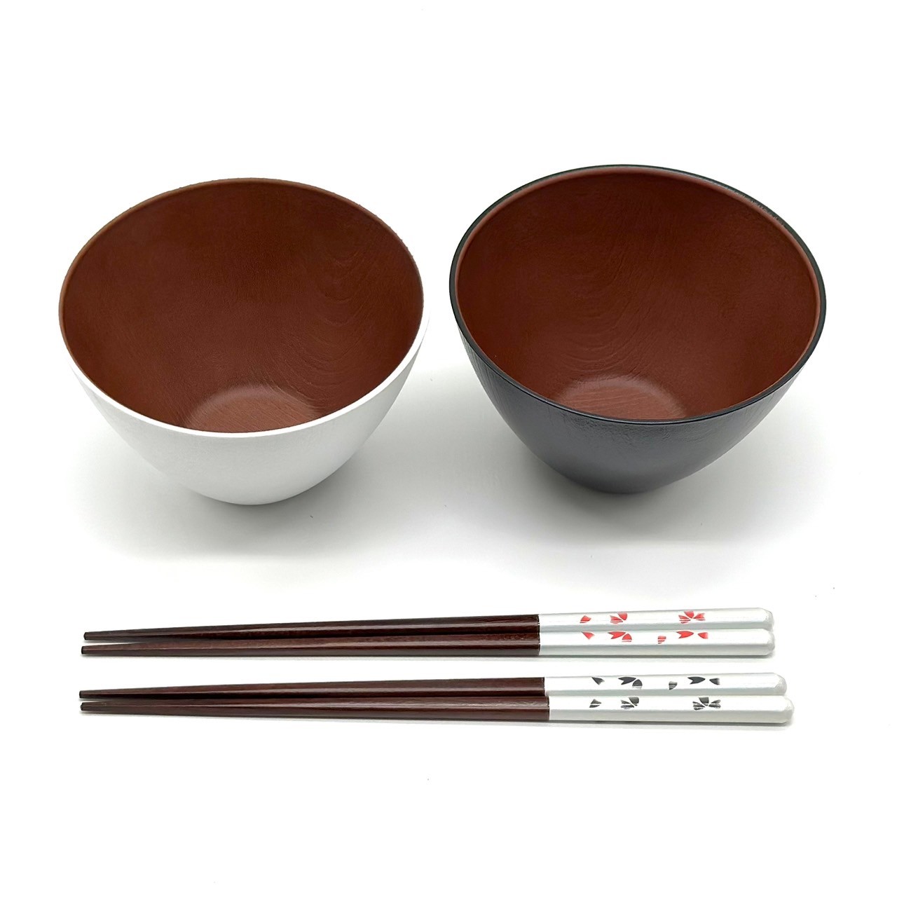 【食洗機・電子レンジ対応】 4点セット お椀 マルチボウル ブラック ホワイト 2個セット 箸付き [001-012-005]