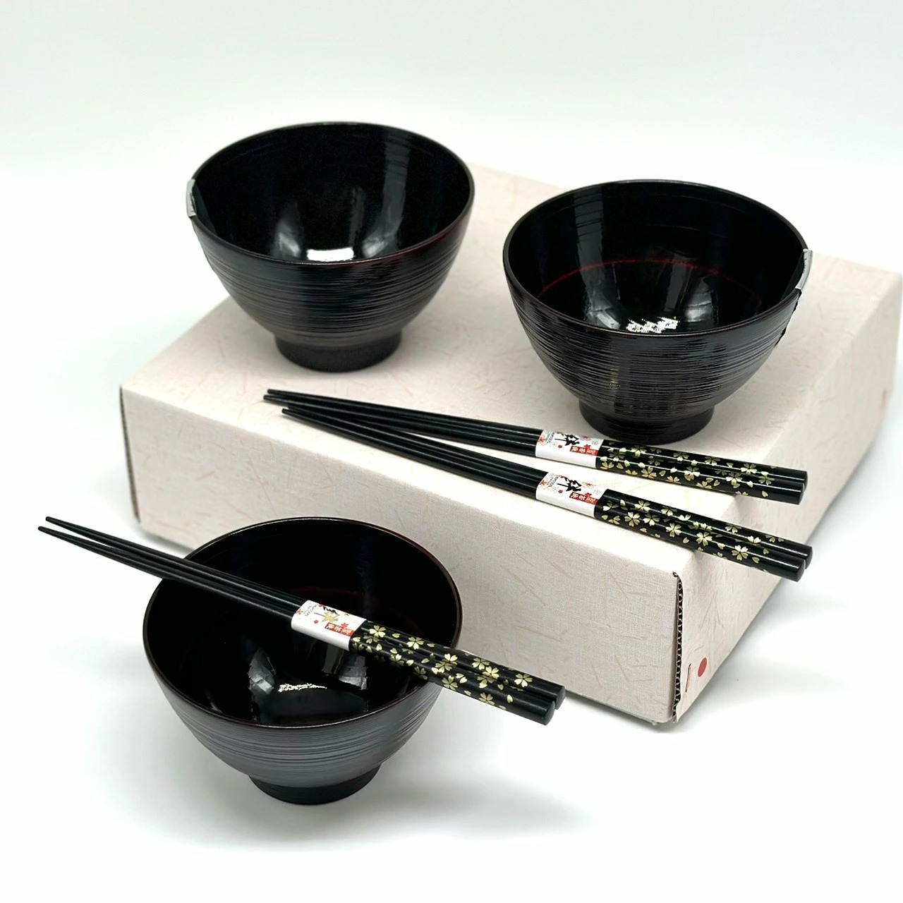 | 汁椀:12cm×12cm×7.3cm 箸:22.5cm 箱寸:26cm×24.2cm×8.7cm |