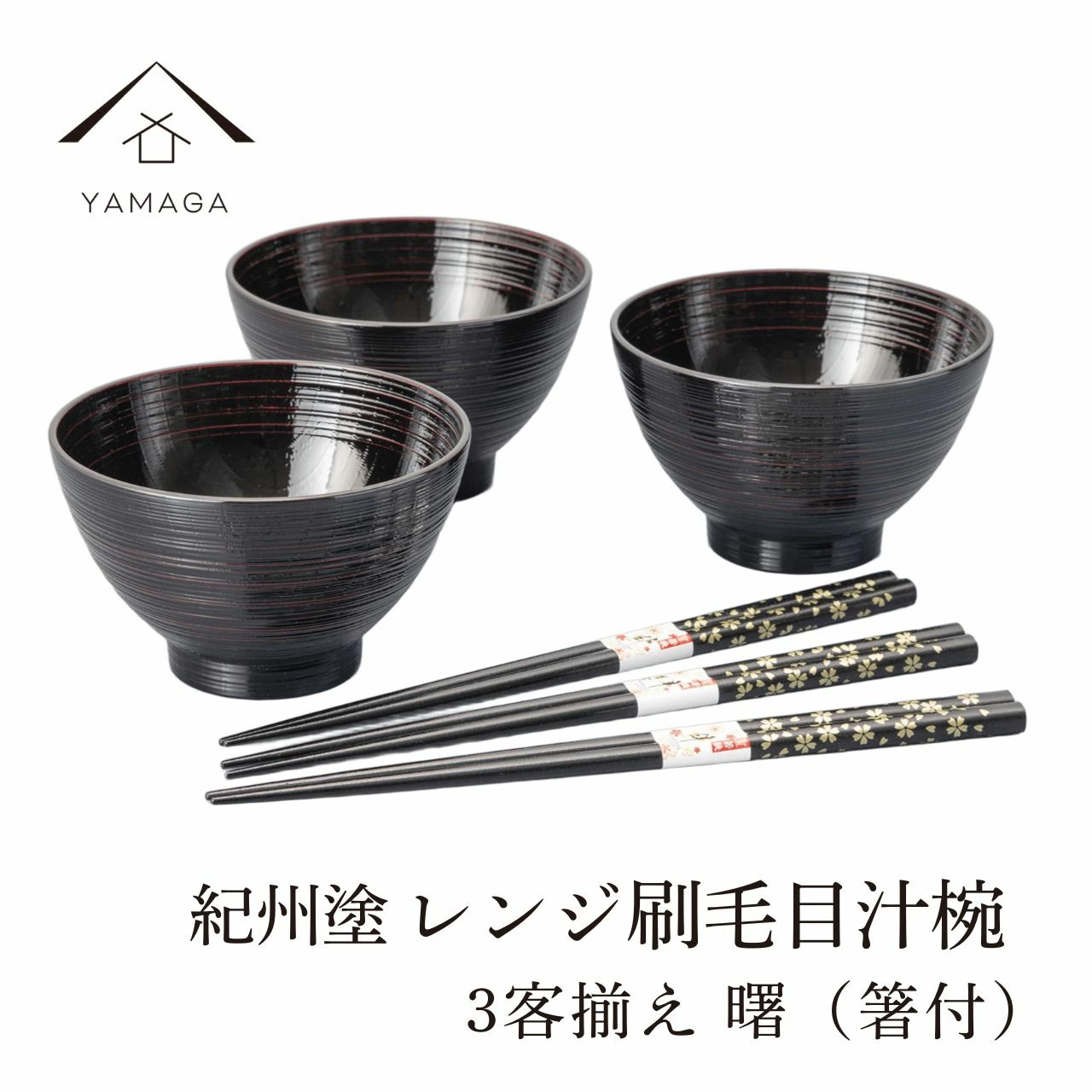 | 電子レンジ・食洗機が使える紀州塗りのレンジ対応汁椀です!お箸付の3個セットでギフトにも最適です! レンジや食器洗浄機も使えるため、普段使いでも使いやすいですが、曙塗りの高級感がゲストのおもてなし、また引越し祝いや結婚祝い、新築祝いなどのプレゼントとしても非常に重宝される商品となっています。 曙塗りは紀州漆器の伝統技法の一つ根来塗りの色味が逆転した塗り方で、朱色の下塗りを施した上から、黒塗りの上塗りをし、その黒塗りが擦れ出た情緒ある趣が楽しめる日本の伝統美美しい塗り方となっております。 日本国内だけでなく、海外からのゲストの方にも気に入っていただけること間違いなしです! |