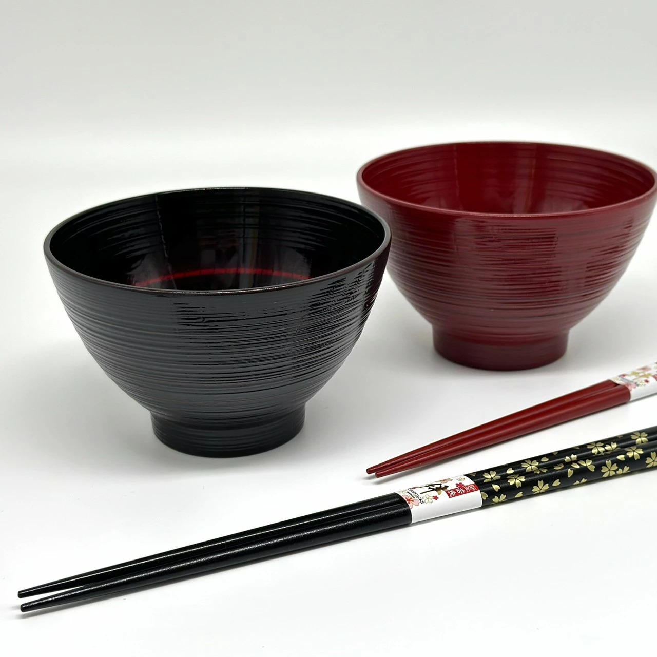 【食洗機・電子レンジ対応】 お椀 汁椀 ペア 曙&根来 2個セット 塗り箸 2膳 4点セット [030-012-003]